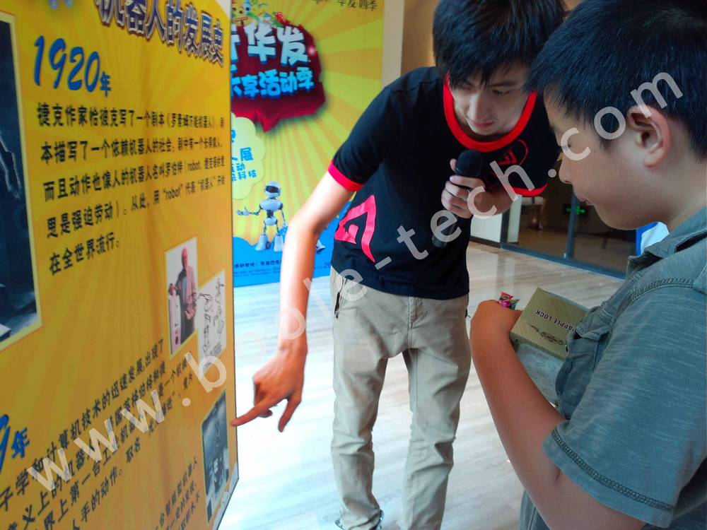 據(jù)了解,此次活動內(nèi)容精彩紛呈,現(xiàn)場設(shè)置了圖片展示區(qū),讓小朋友更加直觀清楚地了解機器人的發(fā)展史。
