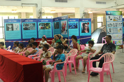 這是發(fā)生在海南瓊海的某軟件職業(yè)技術(shù)學(xué)院藝術(shù)館開展的科技夏令營(yíng)活動(dòng),其中智能機(jī)器人科普展覽的一幕。從??趯3舔?qū)車趕來的賀女士,帶著女兒看完了展覽,感受了這一切后,交口稱贊,要求女兒回去后寫一篇心得筆記。