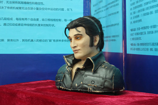 除了跳舞機(jī)器人,還有高仿真人貓王、高仿真恐龍機(jī)器人、會(huì)打兵乓球的機(jī)器人、家庭小王子機(jī)器人、腦電波測(cè)試儀機(jī)器人、紅蜘蛛機(jī)器人等。