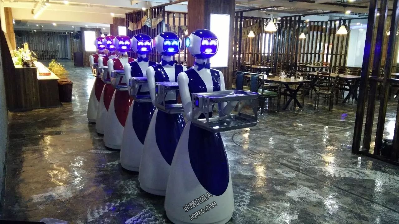 圖為一家采用澳博餐廳機(jī)器人的餐廳,6臺澳博餐廳機(jī)器人可以同時送餐服務(wù),減少人力投入降低成本,還能與客人互動,增加餐廳整體氛圍,吸引更多人氣。