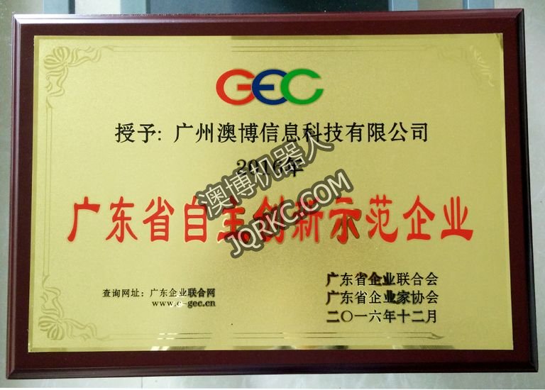廣州澳博信息科技有限公司評為2016年廣東省自主創(chuàng)新示范企業(yè)