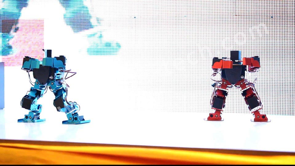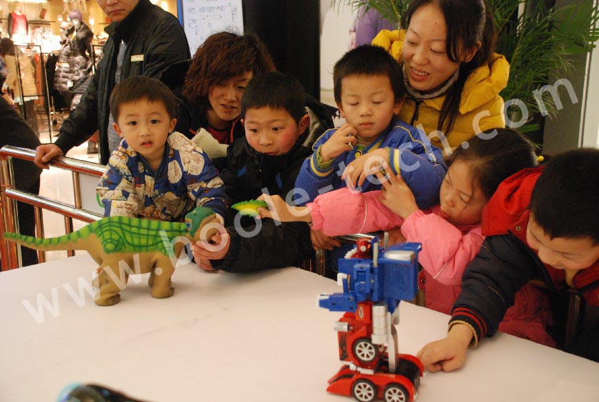 小型舞蹈機(jī)器人,是本場(chǎng)表演的重點(diǎn),它能表演俯臥撐、仰臥起坐、前滾翻、后滾翻,表演節(jié)目:俏夕陽(yáng)(舞蹈)、街舞、南非世界杯舞蹈;而最激動(dòng)人心的還是火熱的江南style舞蹈,更有小朋友跟著舞蹈和機(jī)器人一起跳了起來(lái)。