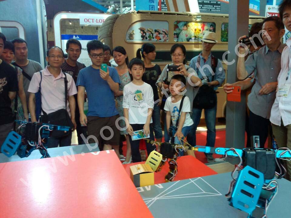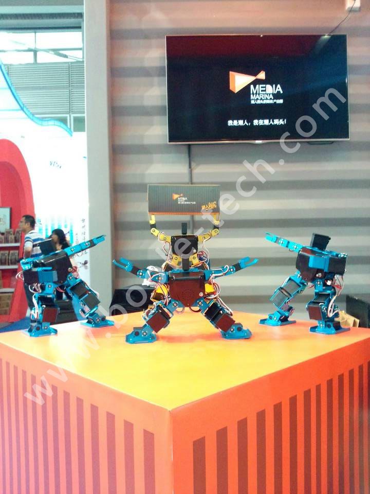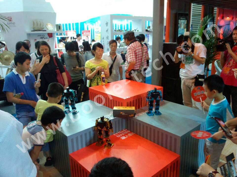 應(yīng)參展商邀請(qǐng),我們共推出多款智能機(jī)器人,助陣“潮人碼頭”參展商,多臺(tái)舞蹈機(jī)器人一起跳舞,吸引了現(xiàn)場(chǎng)很多游客圍觀,同時(shí)也有不少電視臺(tái)記者采訪,“機(jī)器人表演”成為了展會(huì)中一個(gè)亮點(diǎn)。